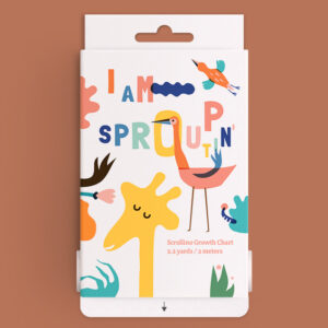In the Scrollino I am Sproutin’ Up follow the giraffe’s neck as you grow up and imagine the stories as she meets her animal friends. This original growth chart is long enough to measure the whole family, simply choose the measuring system of your preference (inches or cm) and note the most important events on the paper roll. That way you will keep all memories even if you move to a new house.