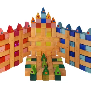 The Bauspiel Grid blocks can be interlocked with each other to create houses, castles, and palaces. They were designed to be used in combination with other Bauspiel toys