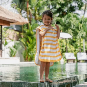 It’s a super soft, micro-fibre towel and a wearable hooded poncho rolled into one. That means more smiles and fewer shivers for your little one during a day at the beach or by the pool.