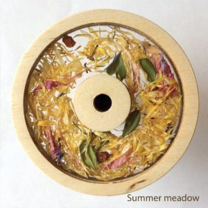 The kaleidoscope consists of a minimum number of components required to achieve a maximum effect. Also, its production process is highly simplified: the core of a branch is hollowed out, all the components are assembled and the kaleidoscope is covered. This could be considered as the materialization of an idea: minimum outside input and infinity of images inside.