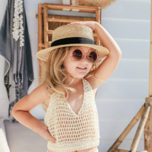 A must have for all tropical babies, the Capri Boater is the perfect little summer accessory for your fashionista. Capri Hats are hand made from high quality straw, with a black ribbon detail.