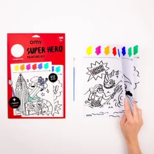The painting kit collection comes in 8 different themes. Each illustration comes with 6 colour swatches printed directly on the sheet.